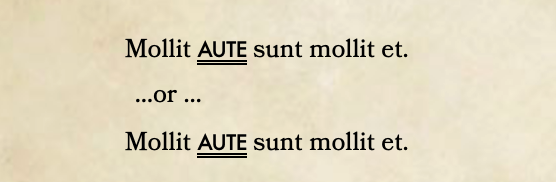Mollit <strong>aute</strong> sunt mollit et.Note that the output is a <strong> tag, not a <b> which in the past was used to indicate “bold”. This is because HTML should be focused on expressing semantic properties rather than stylistic aesthetics. When you are using the strong tag, you are marking that text as important and you are communicating that via a heavier font weight.
